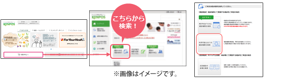 KENPOSにログインし、「健診の申込/受診券発行」から検索。